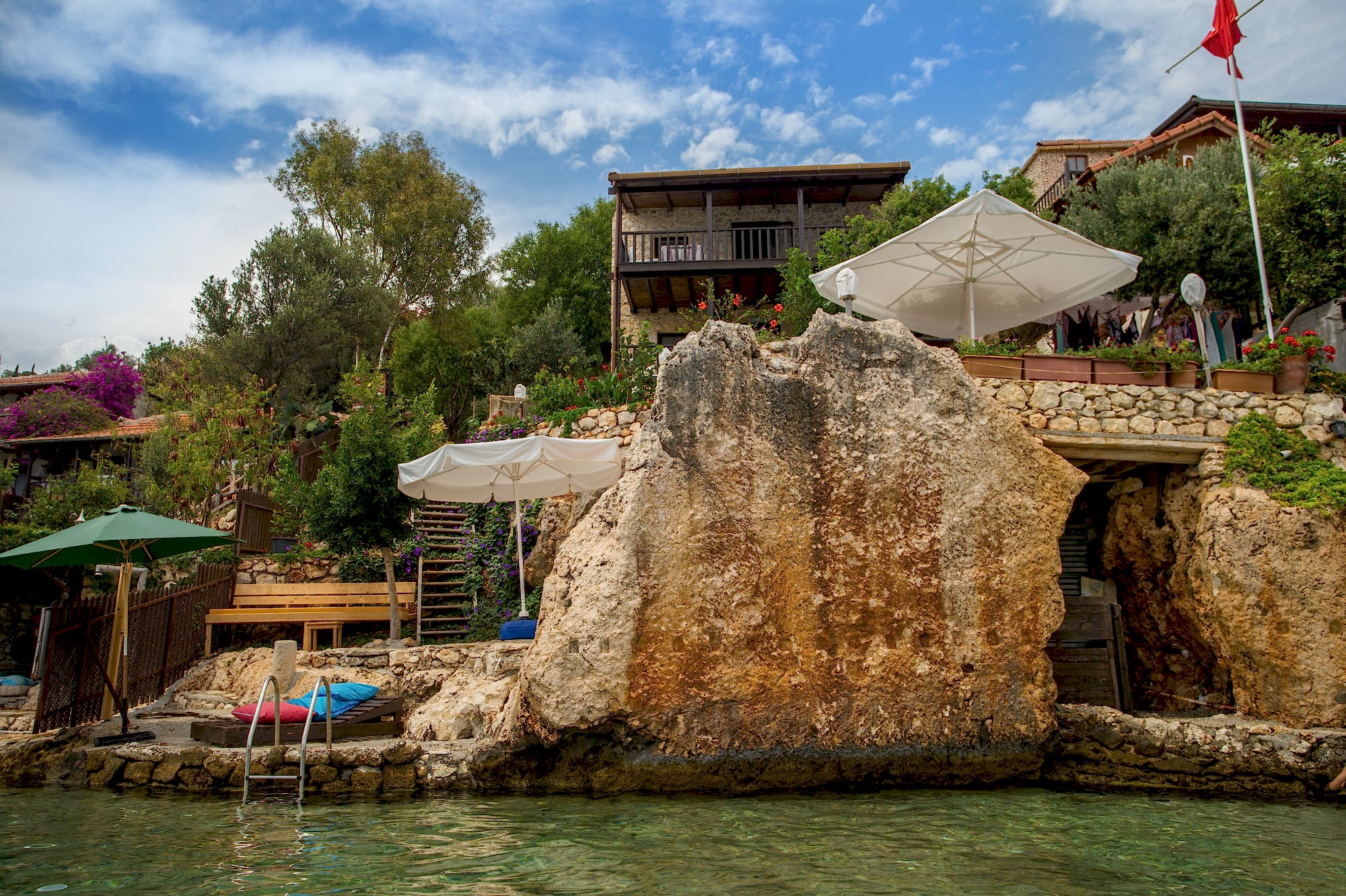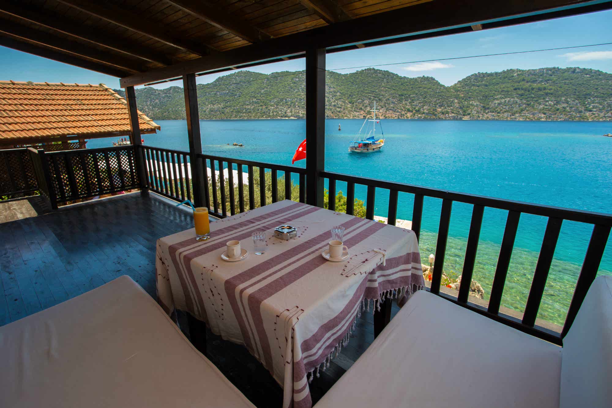 Gün boyunca resepsiyon hizmeti verilmektedir ve ek ücret karşılığında günlük tekne turları düzenlenir. Tesis, Dolchiste (Kekova) kısmi batık kalıntılarına 2 km ve Kaş'ın hareketli kent merkezi 35 km uzaklıktadır.