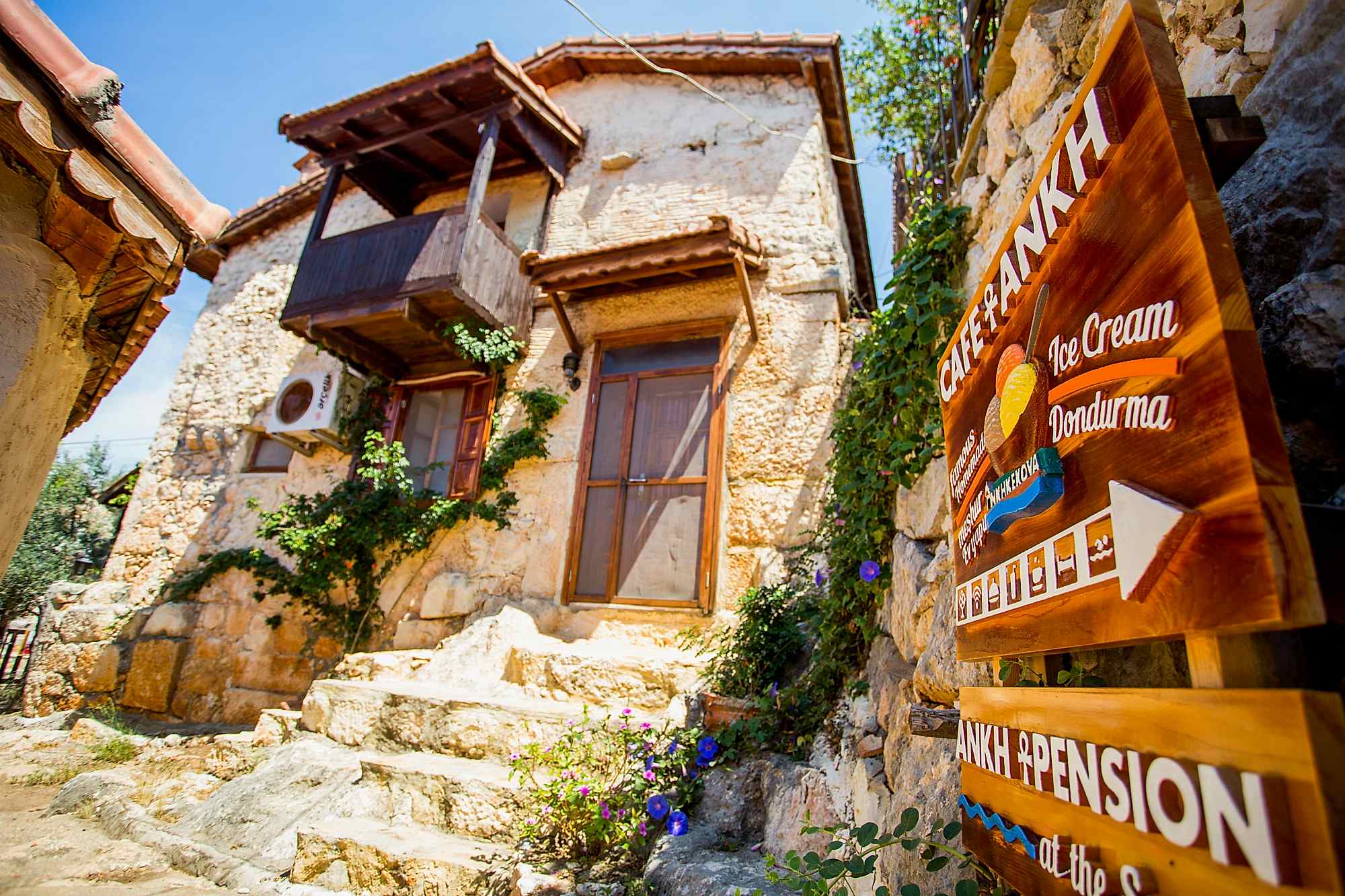 Ankh Pansiyon'un otantik atmosfere sahip sade odalarında klima, özel banyoda ise duş, saç kurutma makinesi ve terlik bulunmaktadır.